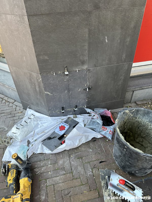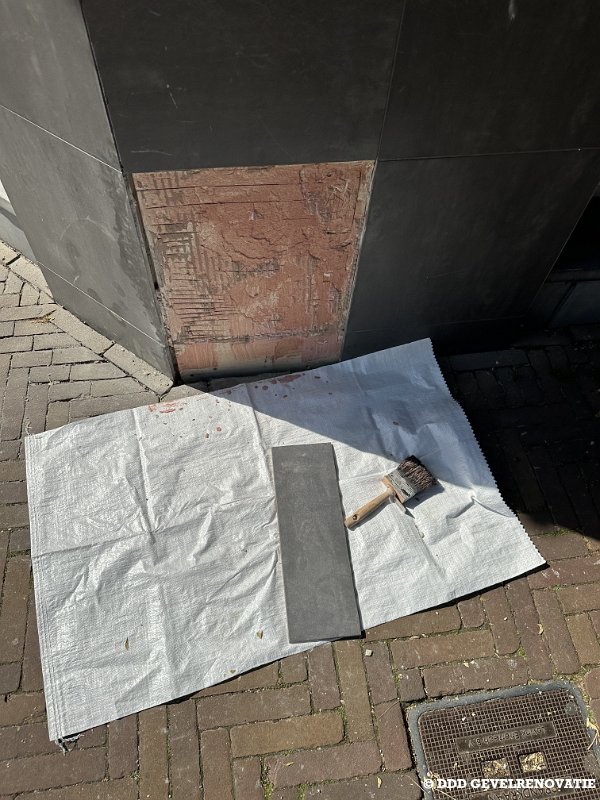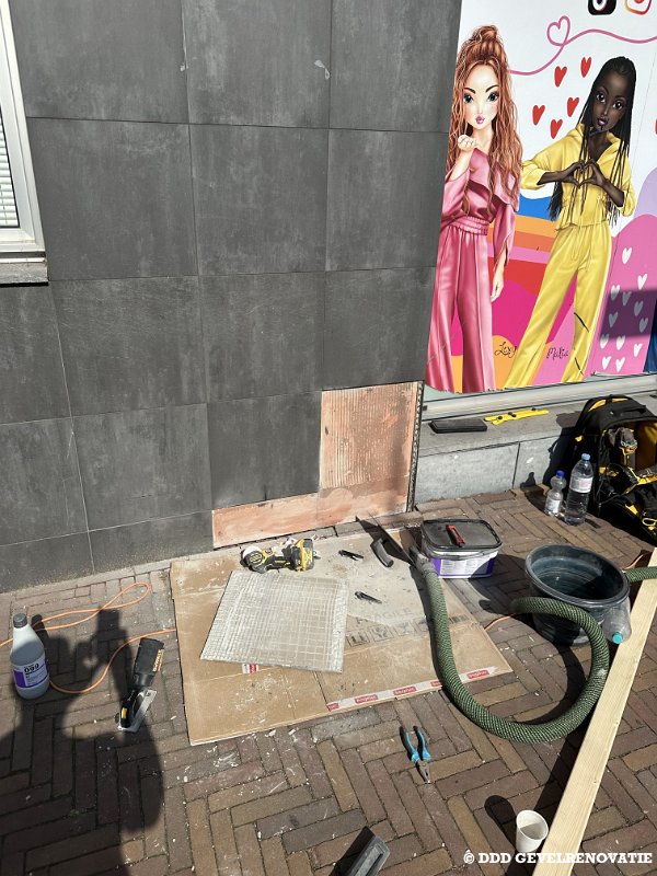 Nieuwe wandtegels aan de gevel, Fahrenheitstraat 537-546, Den Haag
