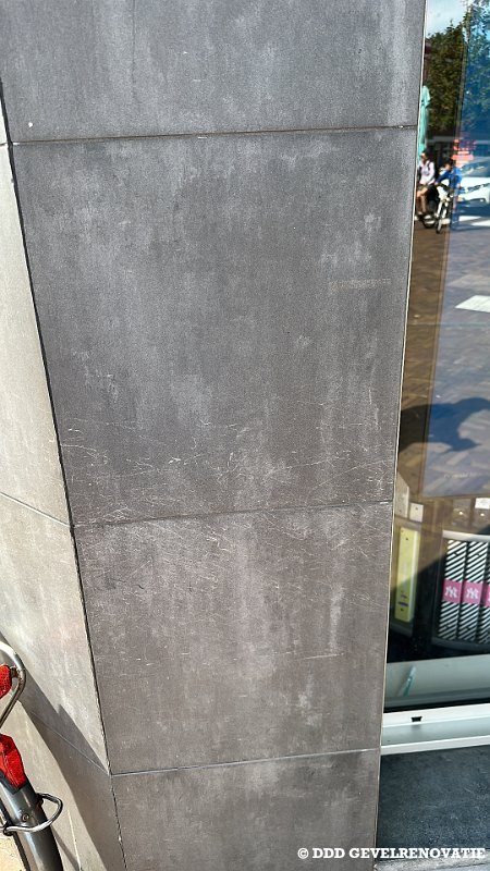 Nieuwe wandtegels aan de gevel, Fahrenheitstraat 537-546, Den Haag